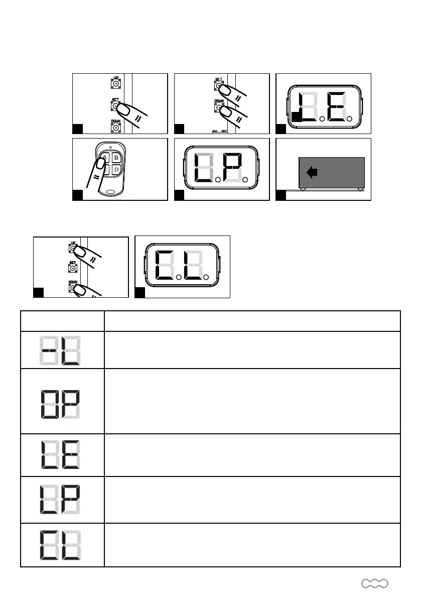 Si votre portail part en ouverture au lancement de la programmation, arrêtez le programme en appuyant sur SET.