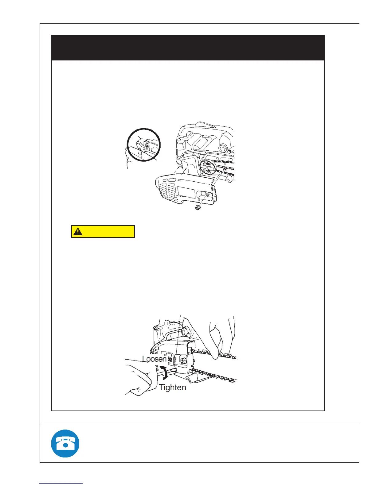 6. While holding up the tip of the bar, adjust the chain ten-