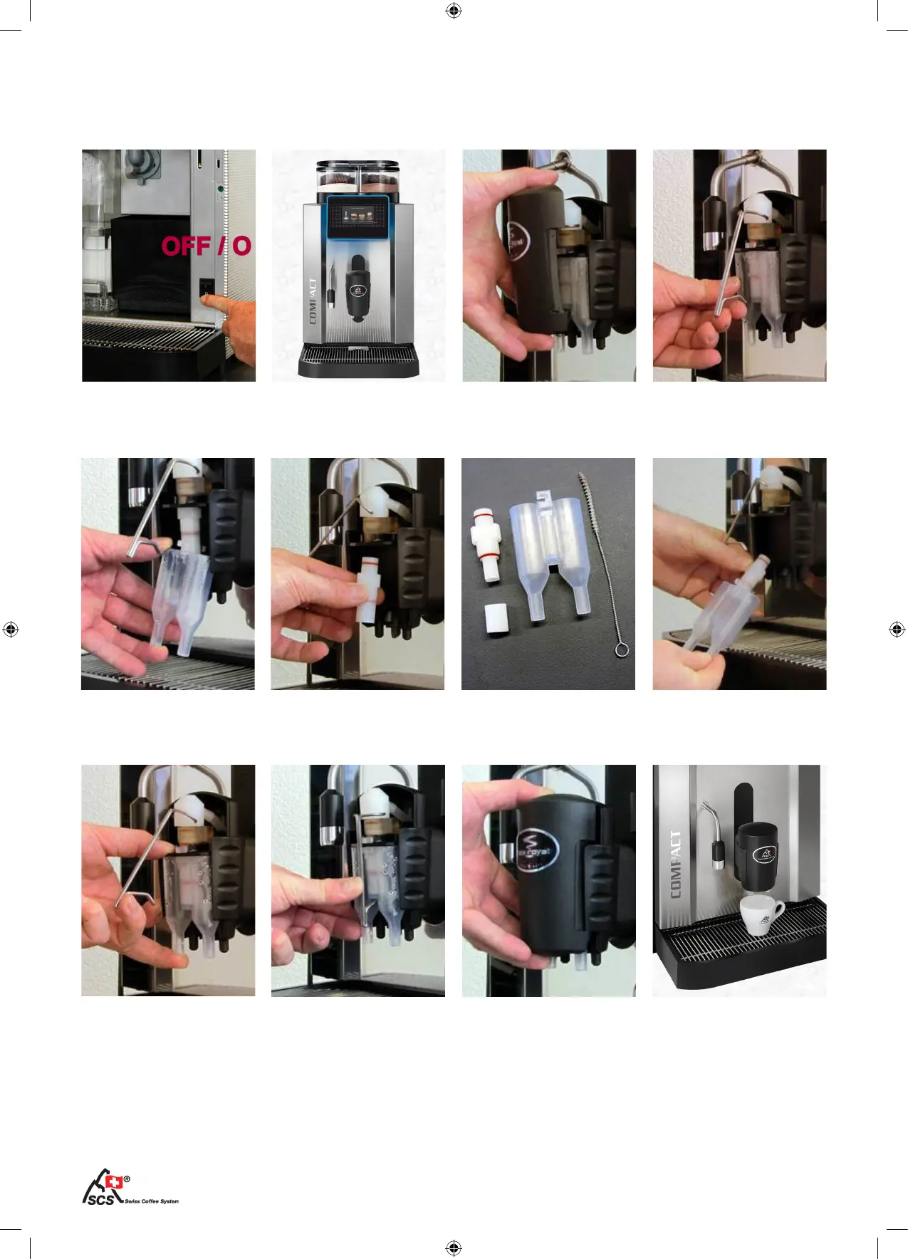 • Switch off the coffee machine • Close the front door • Remove the outlet cover • Open the bracket