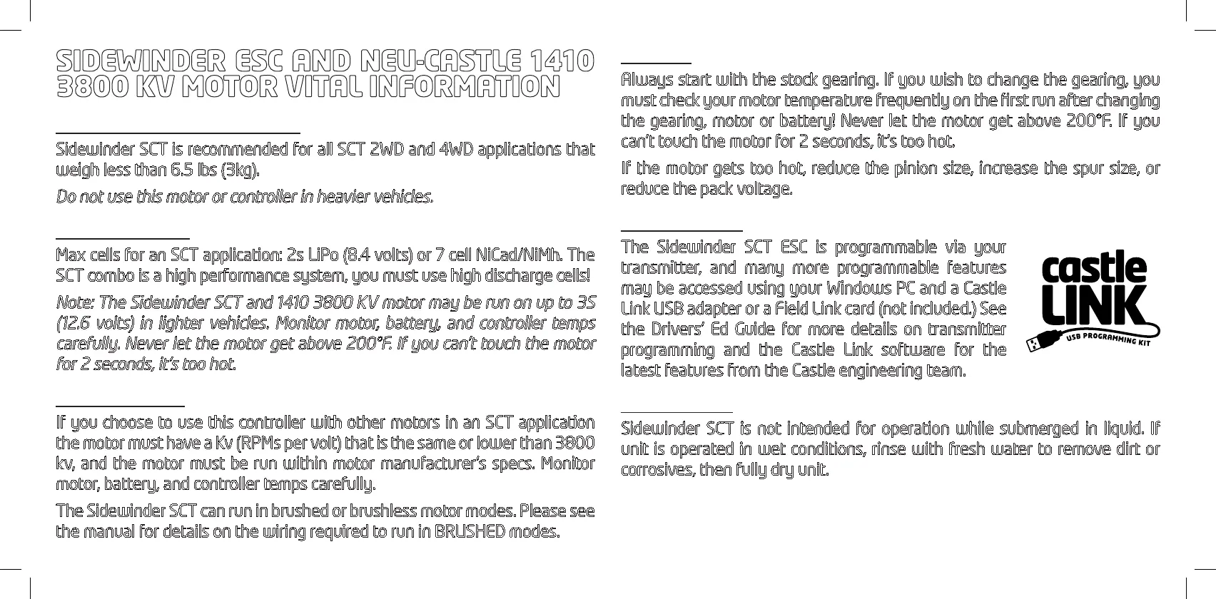 Note: The Sidewinder SCT and 1410 3800 KV motor may be run on up to 3S