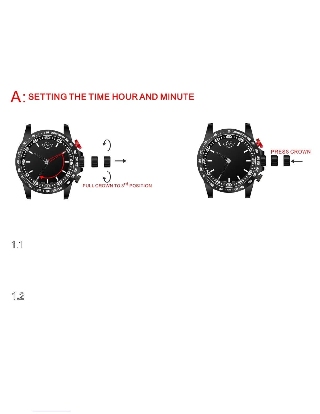 1.1 - Pull the setting crown at 3 o’clock to the third position and rotate either