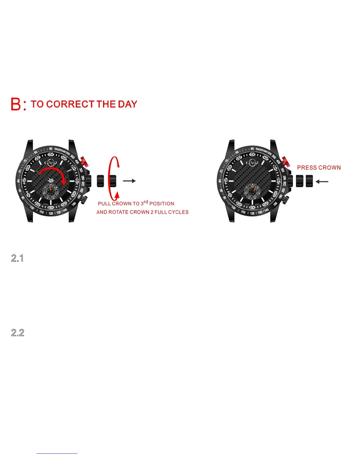 2.1 - Pull the setting crown to the third position and rotate counter-clockwise at