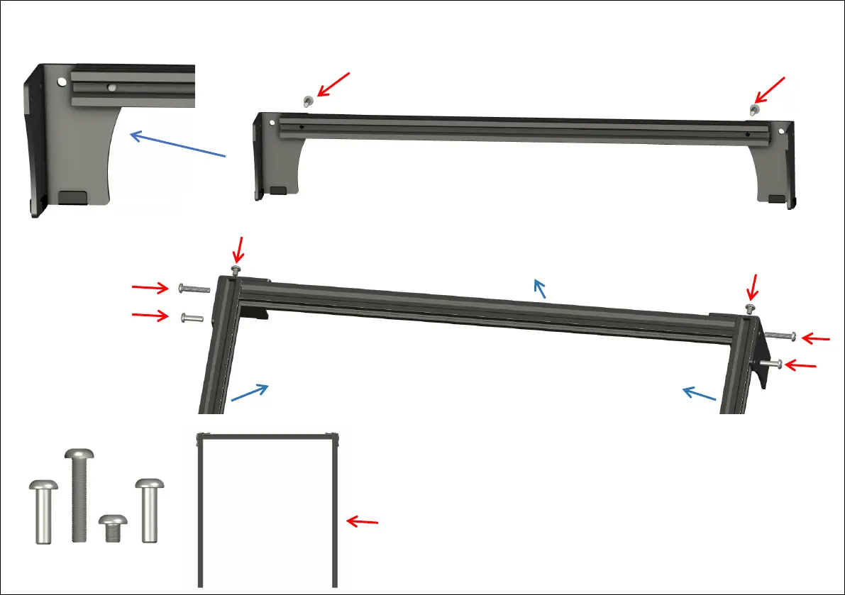 Step1, vigas del marco izquierdo / derecho / trasero, trípode * 2.