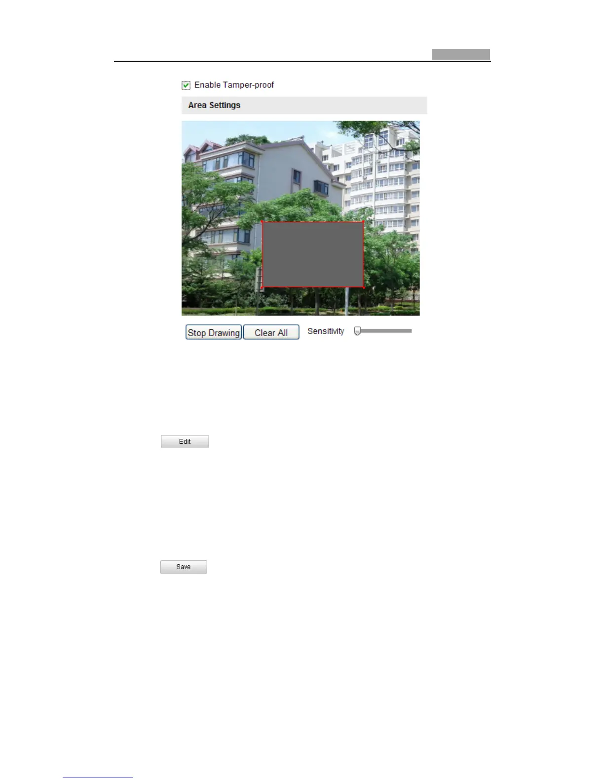 3. Set the tamperͲproof area. Refer to Step 1 Set the Motion Detection Area in