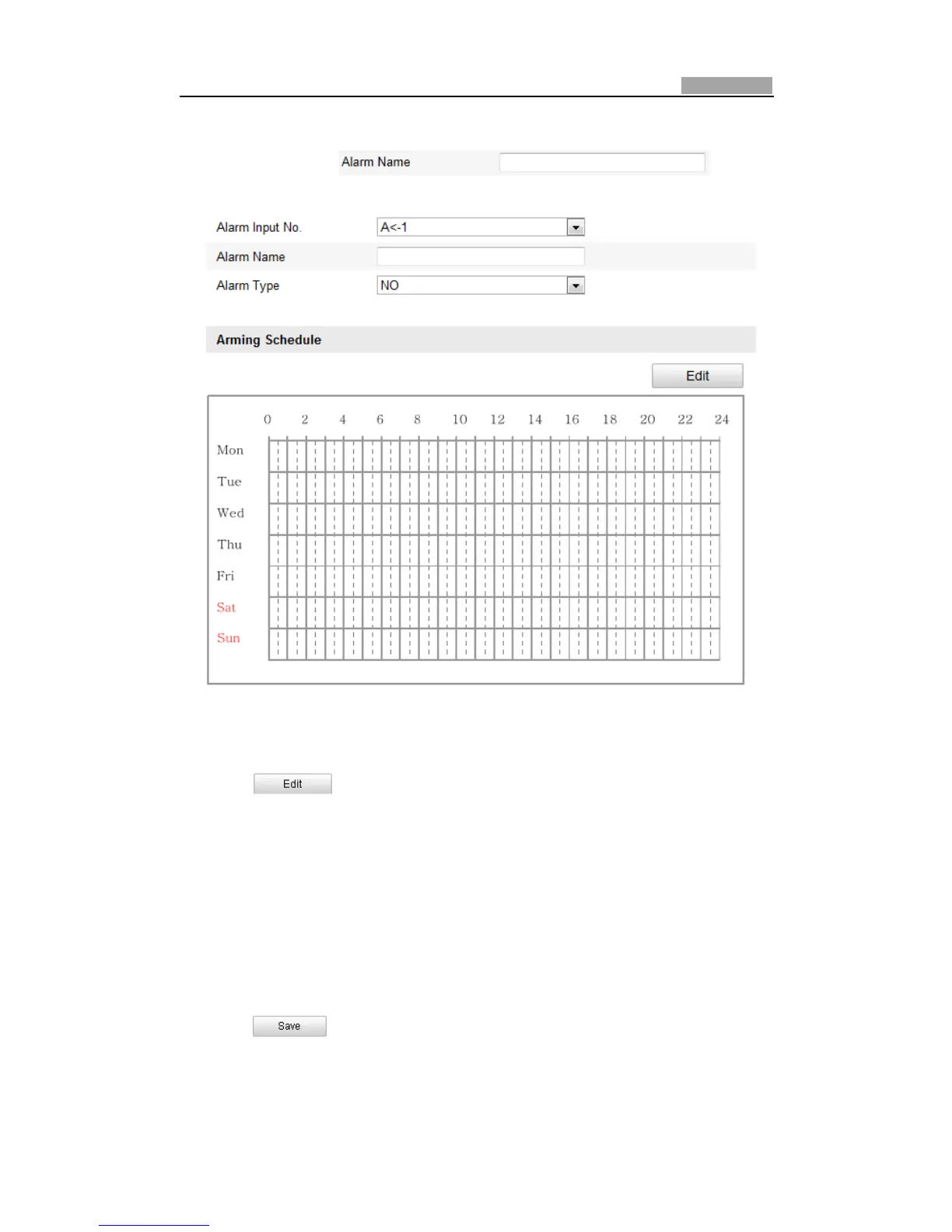 4. Click tosetthearmingscheduleforthealarminput.RefertoStep2