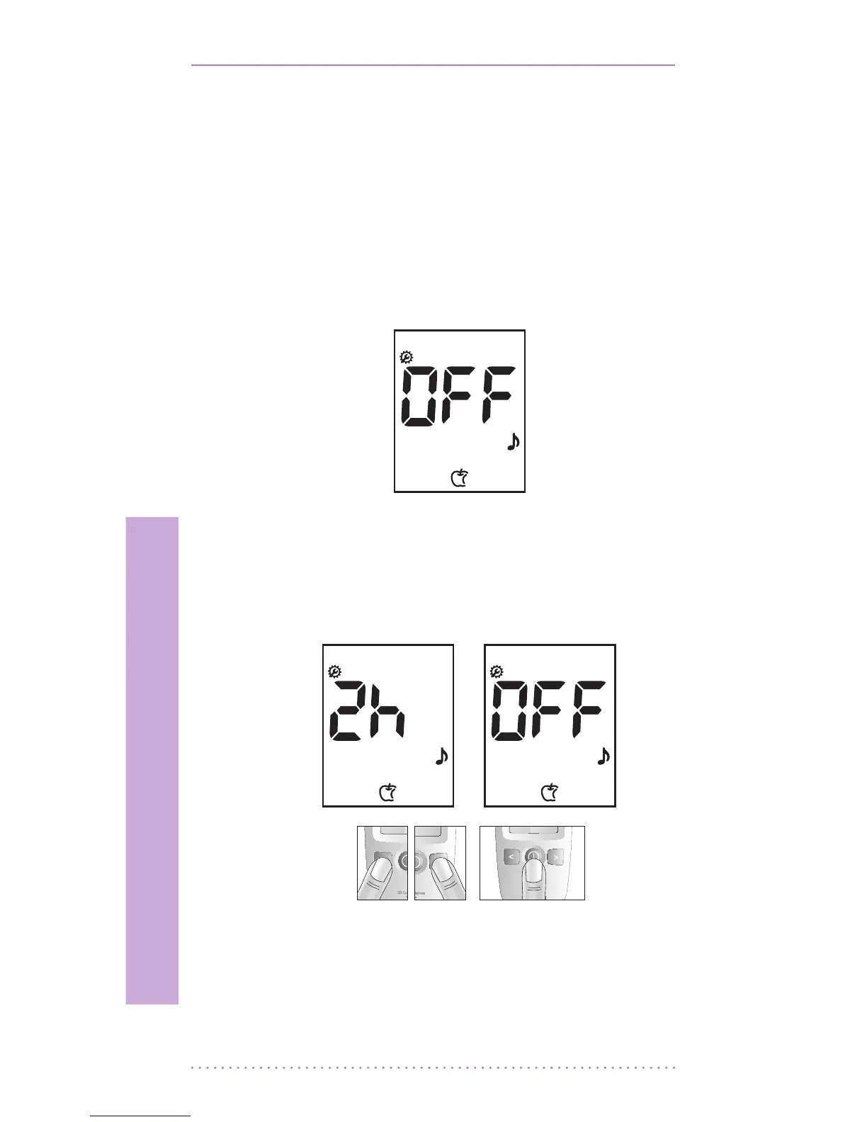 2. Set the post-meal alarm mode ‘2h’ or ‘o’ by