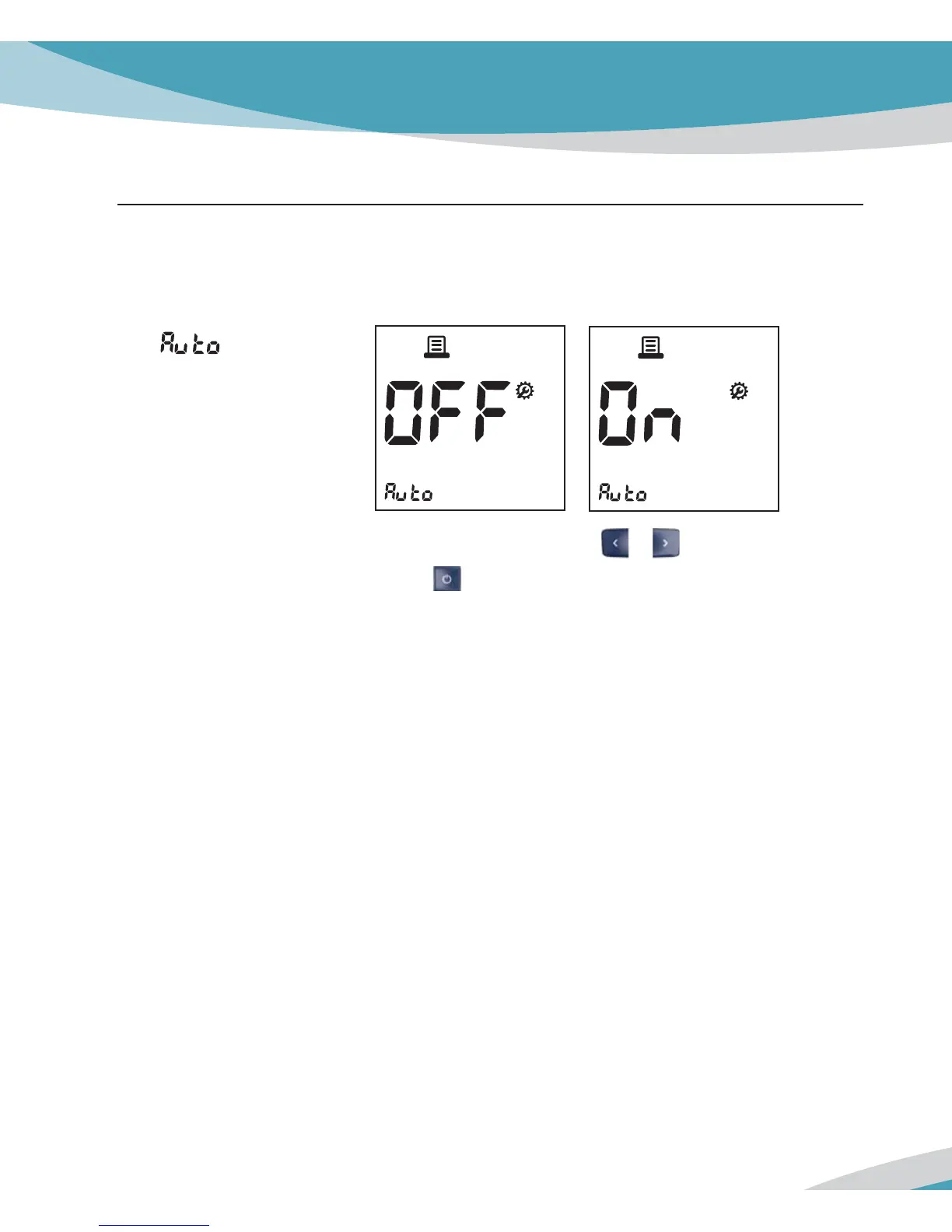 function, ‘On’ or ‘Off’, by pressing either or button and then select