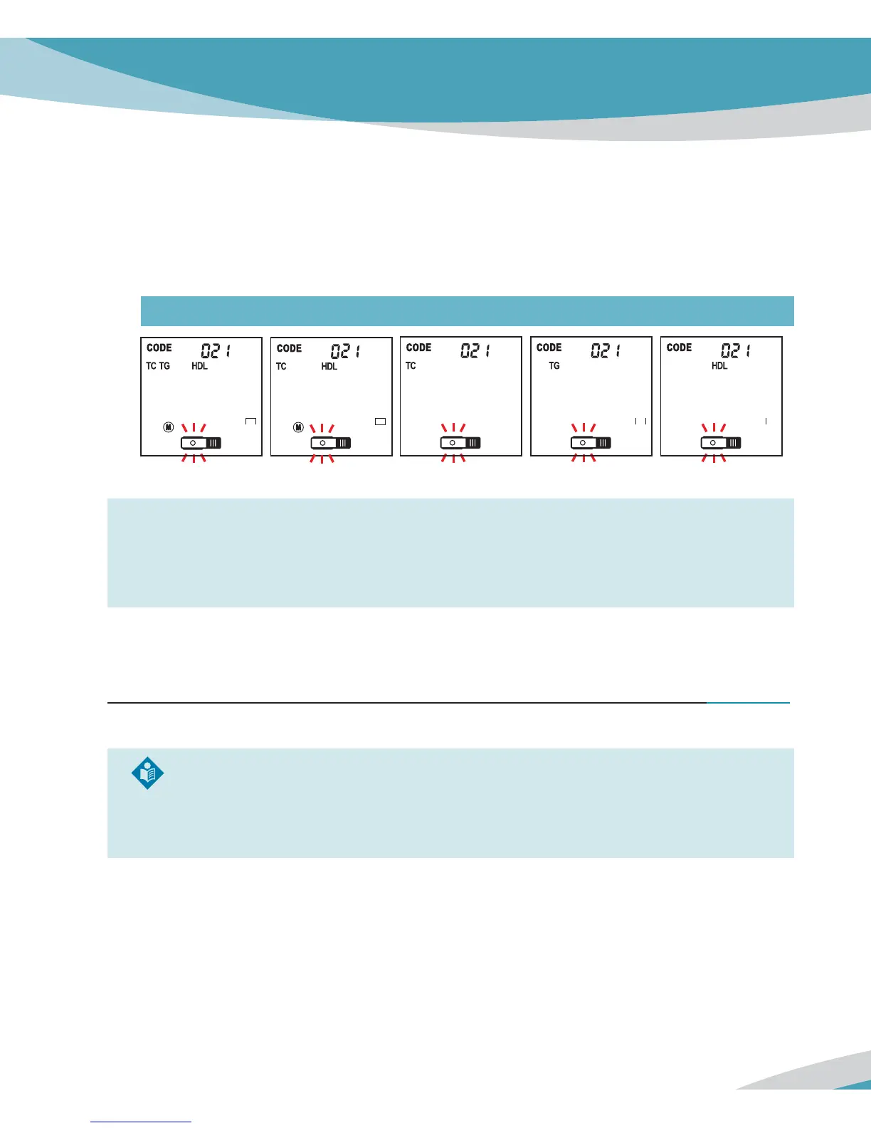 parameter name appears with flashing lipid test strip symbol. This number and parameter