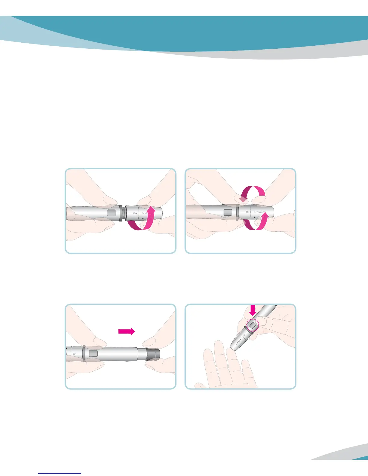 4. After cocking the lancing device back, hold the lancing device firmly against the side of