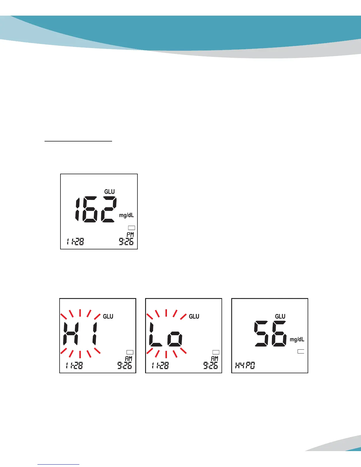 you will receive “Lo”. In these cases, repeat the test with new gluocse test strip. If these