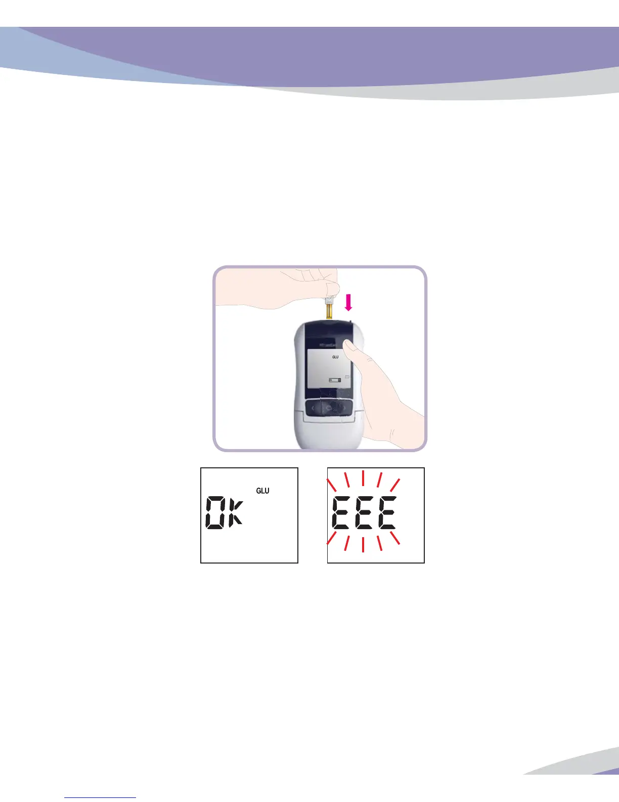 1. Insert a SD Glucose Check Strip (facing up ‘check strip’ printed in arming knob) into