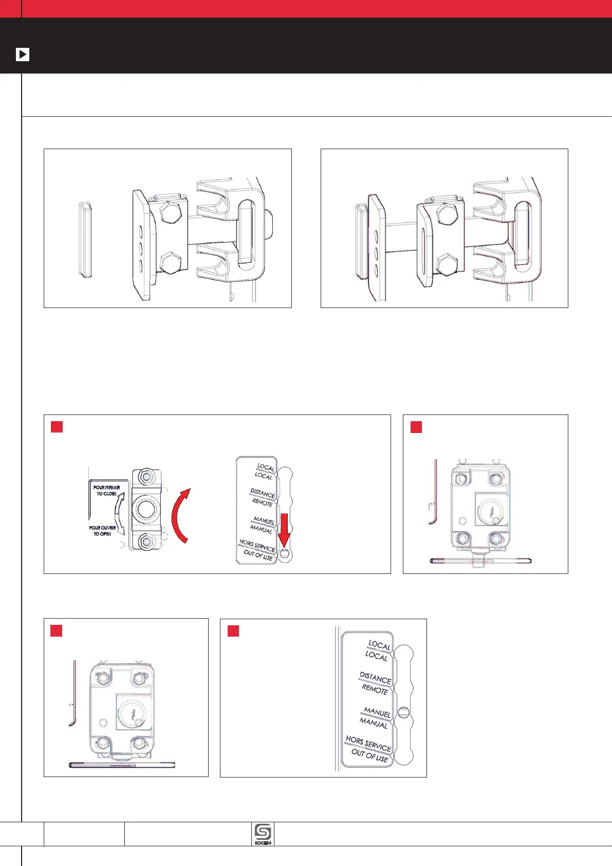 Ce dispositif permet de verrouiller le sélecteur de position, en mode « hors service » avec une serrure type RONIS EL11AP