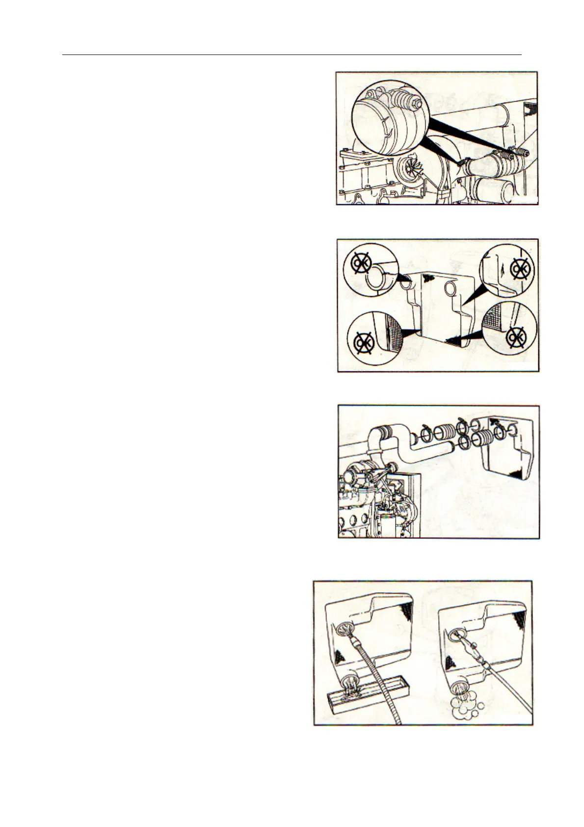 检查进气胶管是否有裂缝或穿孔,夹箍是否松动,如有发现应