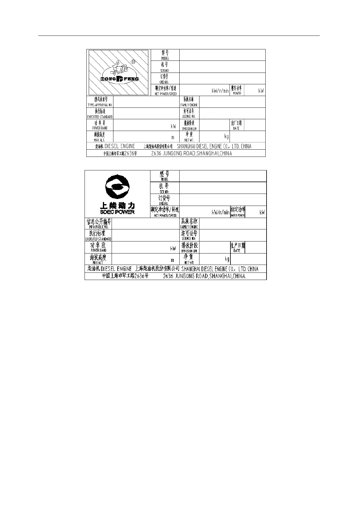 Note: The nameplate must not be changed unless approved by SDEC.