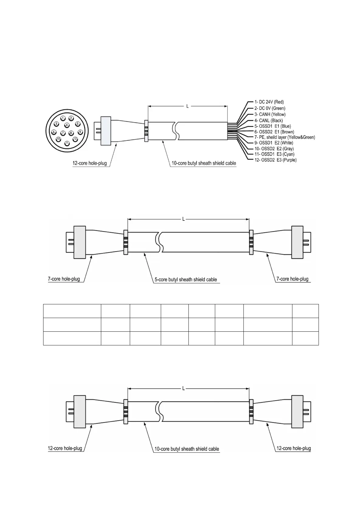 The transmission cable is a 7-core butyl sheath shield cable with 12-core hole-plugs at both