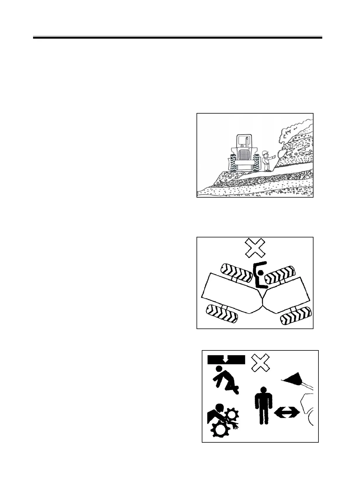 stand too close. The engine must be OFF, the working equipment is locked if people have to