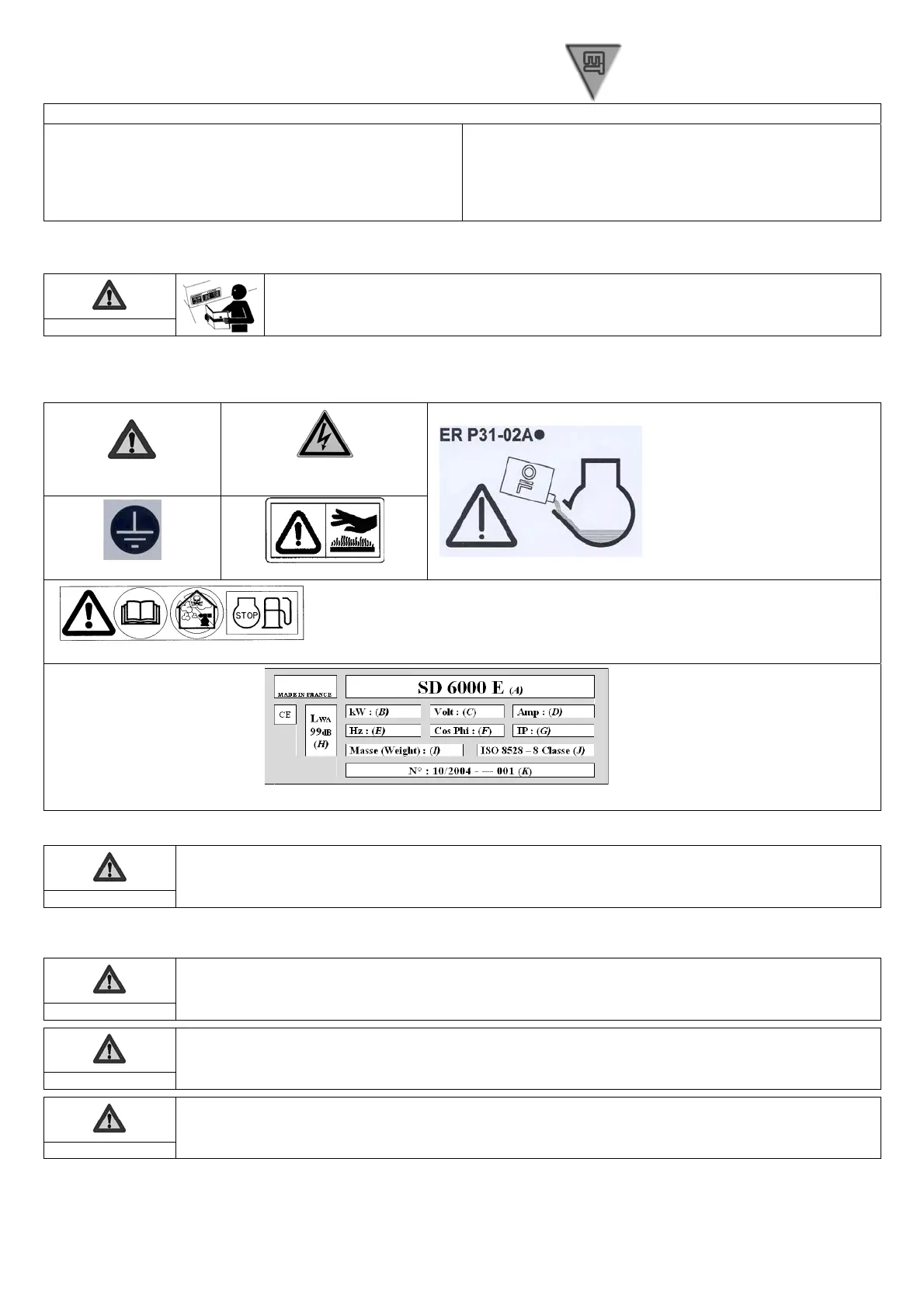 1.2. Piktogrammid ja sildid, mis asuvad generaatori küljes, koos oma tähendustega