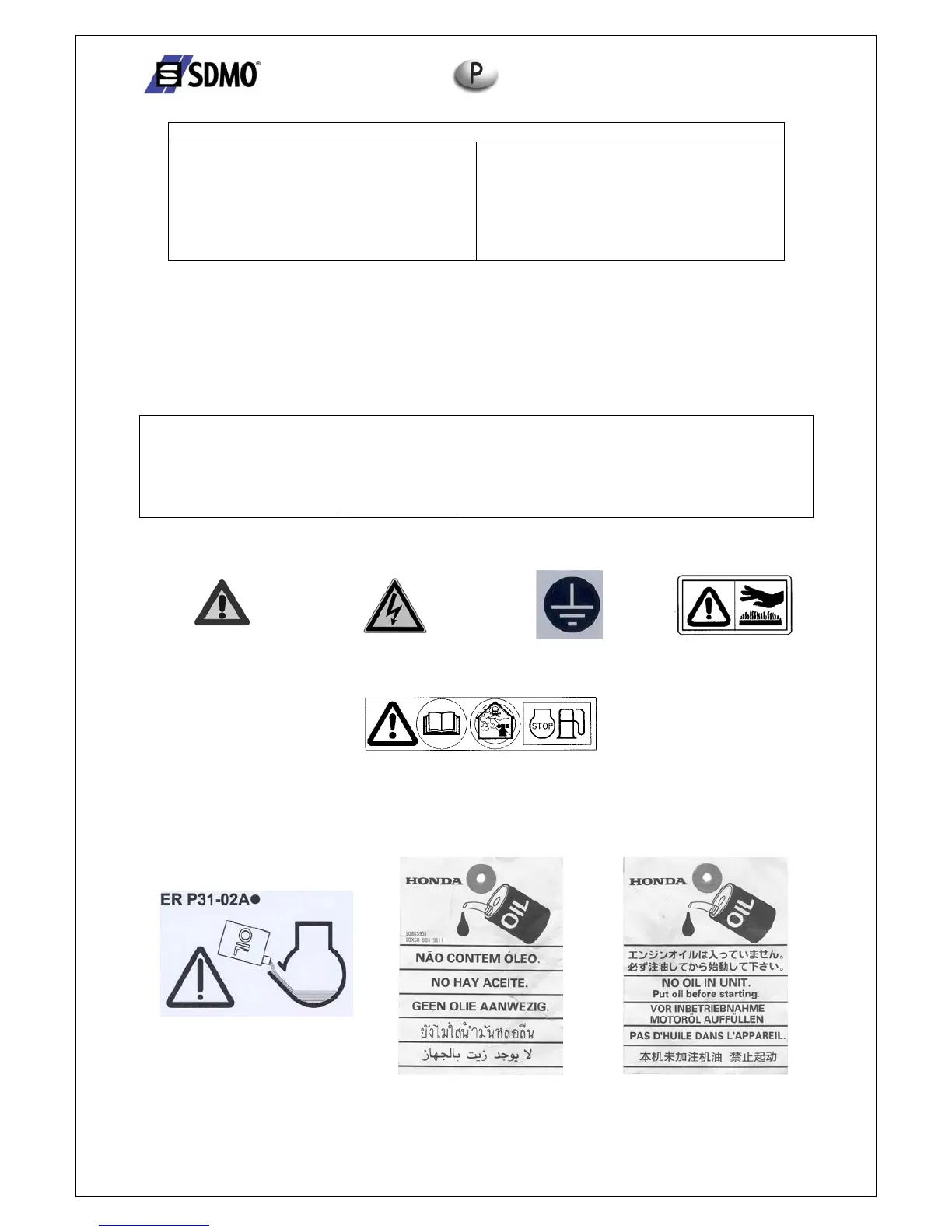 manual e respeite as precauções de segurança, de utilização e de manutenção do seu grupo electrogéneo.