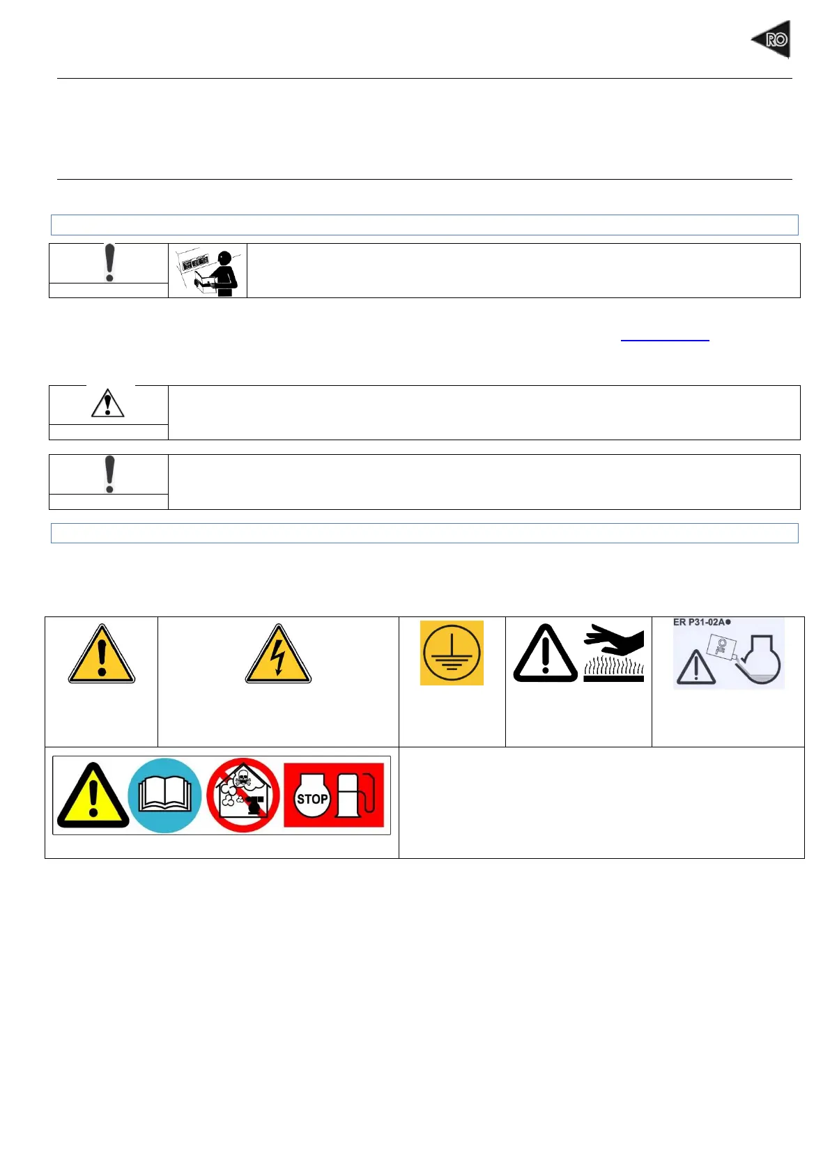 acesta. Păstraţi-le pe toată durata de viaţă a grupului electrogen şi respectaţi cu stricteţe