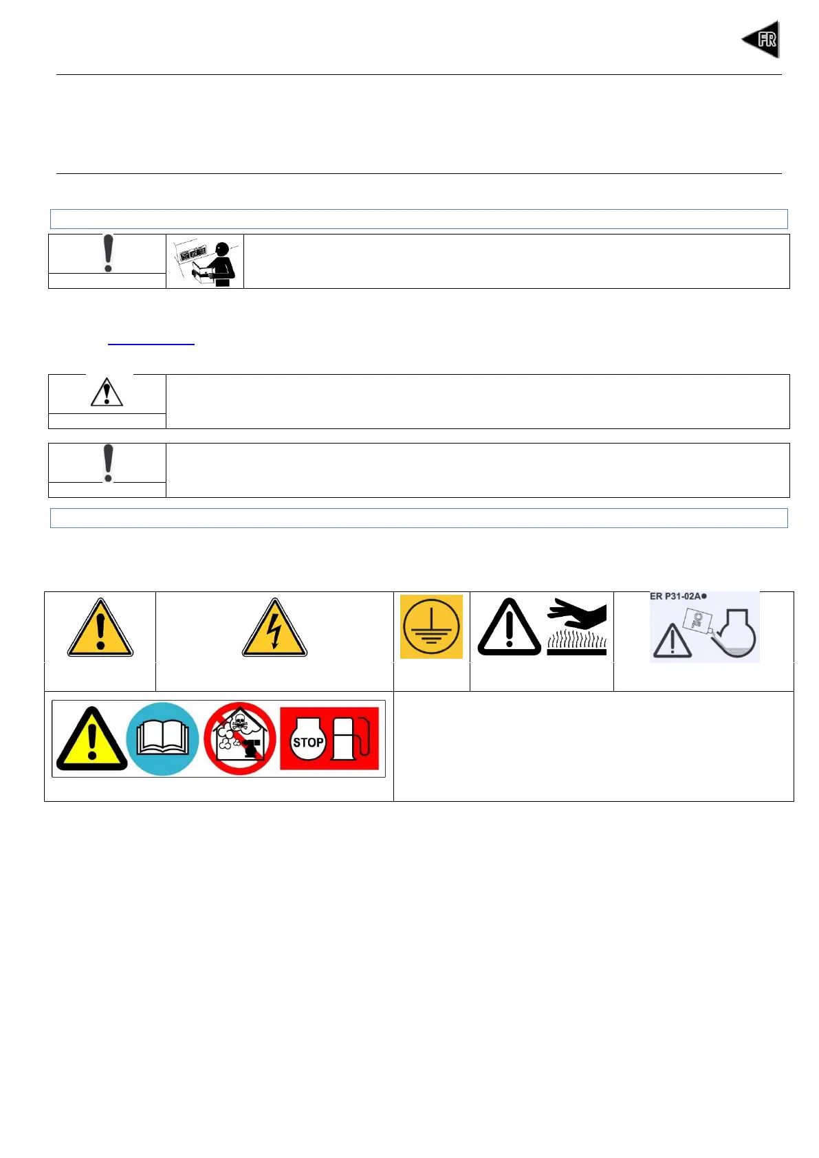 2.1 Signification des pictogrammes présents sur le groupe électrogène