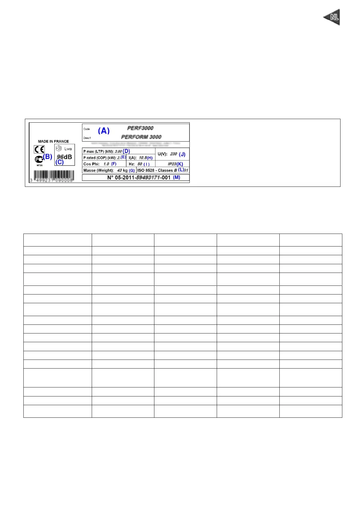 Serienummer van het stroomaggregaat :……../………….. - ……..……..….…. - ………