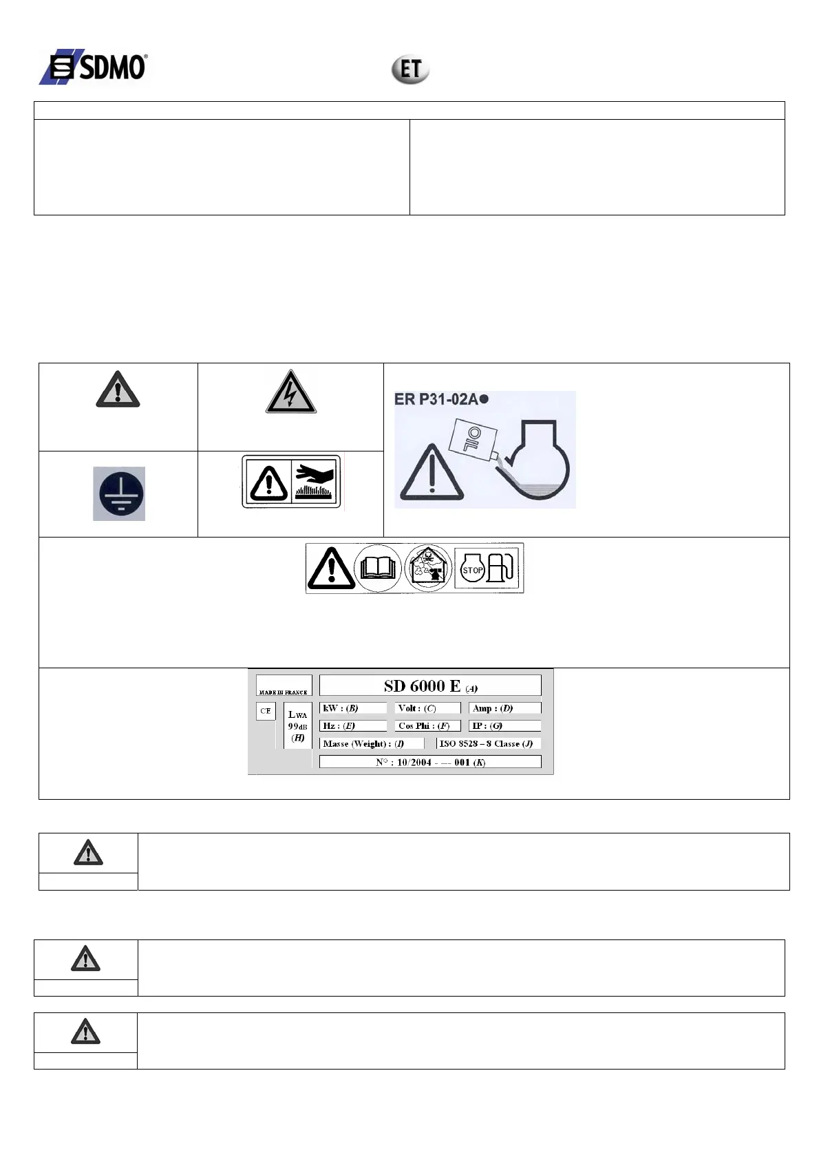 1.2. Piktogrammid ja sildid, mis asuvad generaatori küljes, koos oma tähendustega