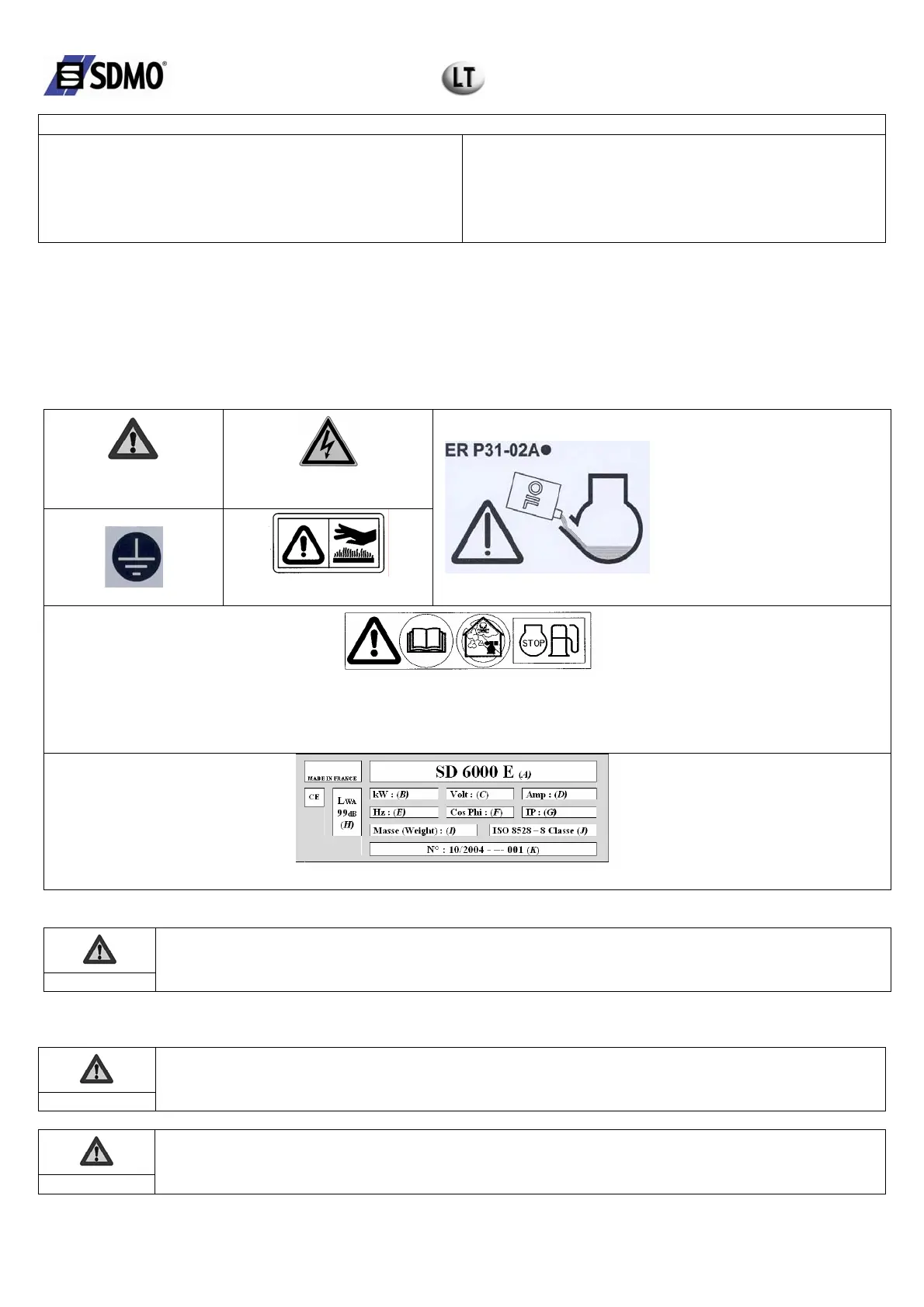 1.2. Ant generatorių esančios piktogramos ir lentelės bei jų reikšmės