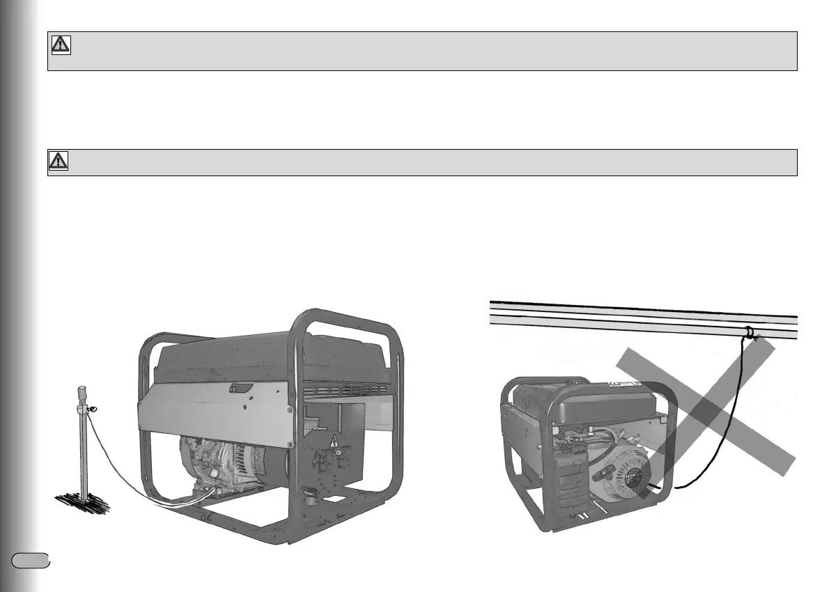 is geslagen (materieel niet meegeleverd met het stroomaggregaat).. Deze aarding zorgt tevens voor de afvoer van de statische elektriciteit die door de elektris-