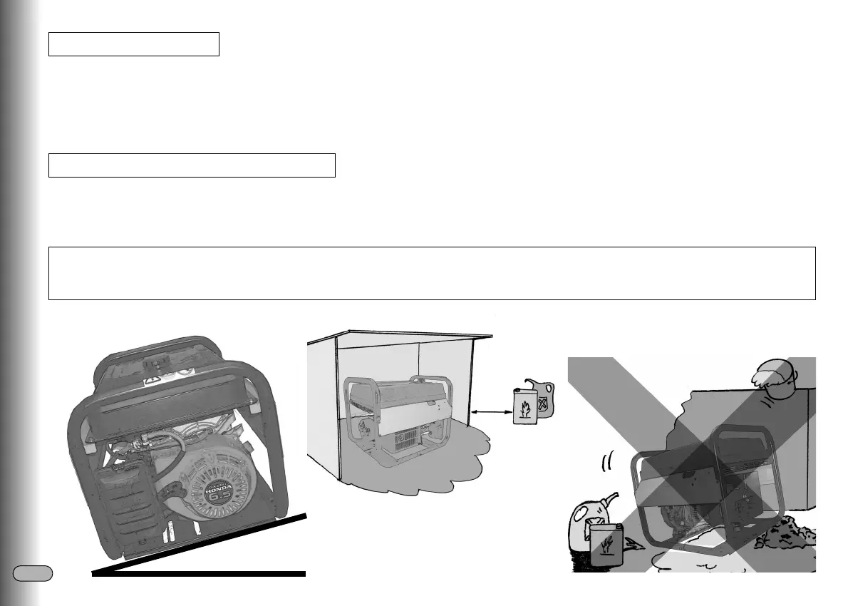 - Zorg voor extra olie en benzine in de buurt van de plaats waar het aggregaat wordt gebruikt, maar houdt daarbij een veilige afstand aan.