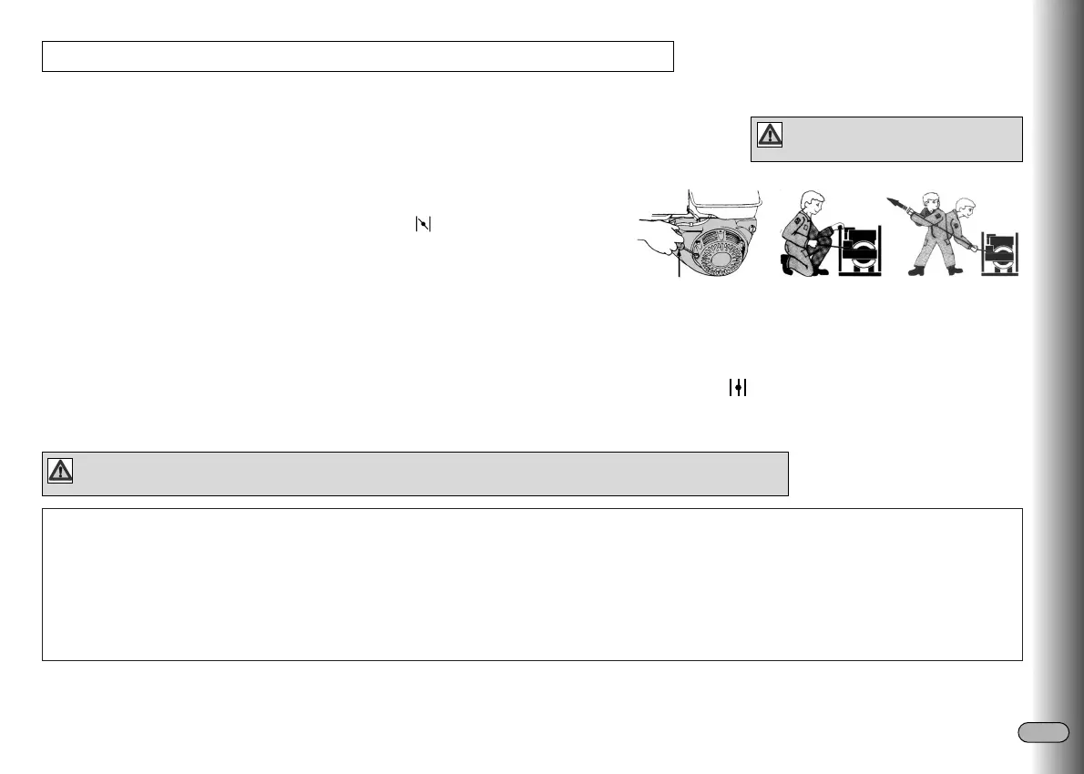 - Kun moottorin lämpötila alkaa kohota mallin mukaan, laita rikastimen vedin vähitellen asentoon "OPEN" tai " " .