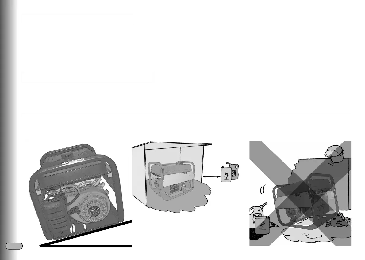 - Prever o reabastecimento em óleo e gasolina nas proximidades do lugar de utilização do grupo, respeitando ao mesmo tempo uma certa distância de segu-