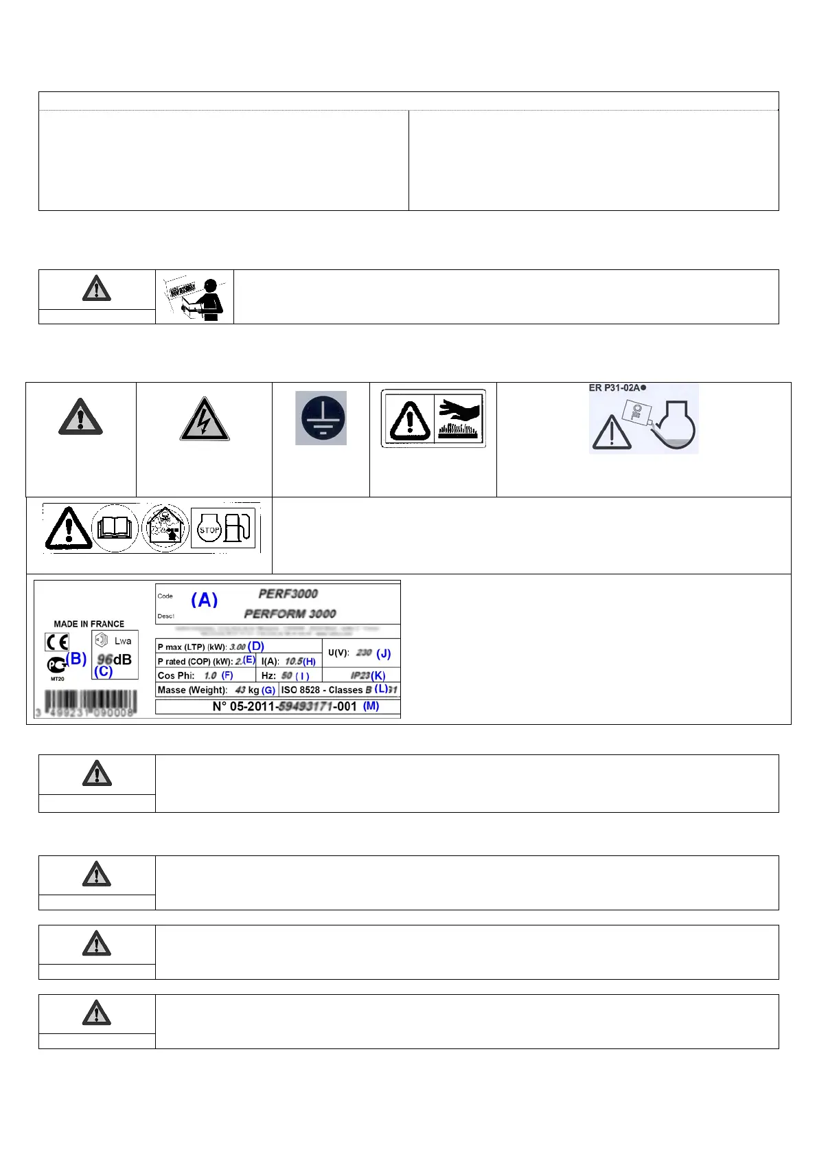 1 - Atención: consulte la documentación facilitada con el grupo electrógeno.
