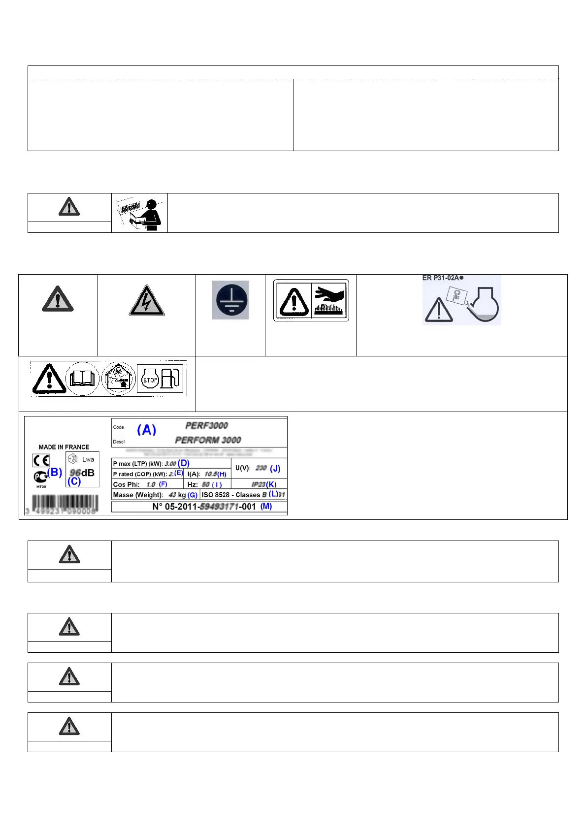 Plusieurs signes d’avertissement sont susceptibles d’être représentés dans ce manuel.