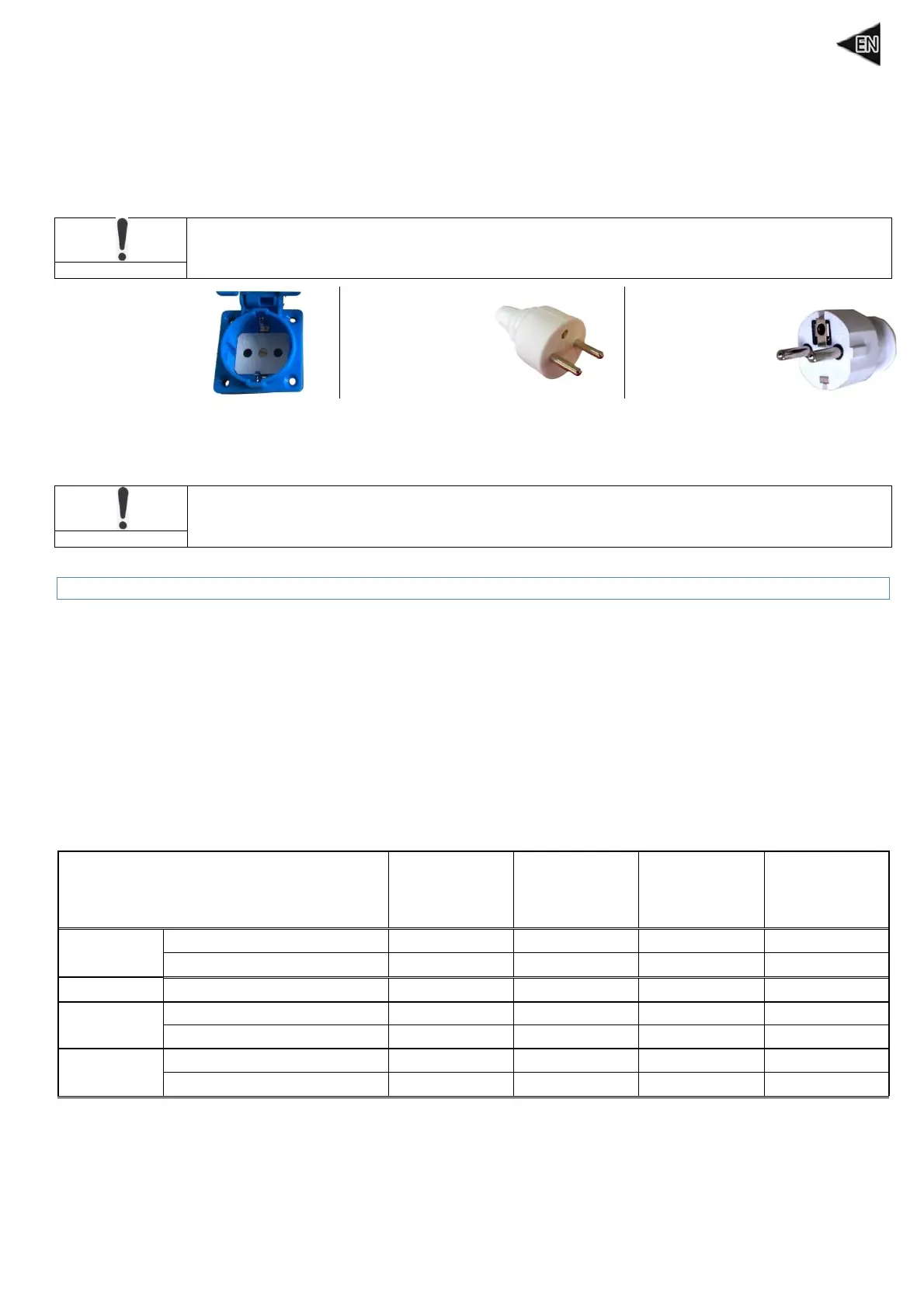 Note (for France only): Our generating sets are fitted with European (Schuko type) sockets where the earthing contact is made