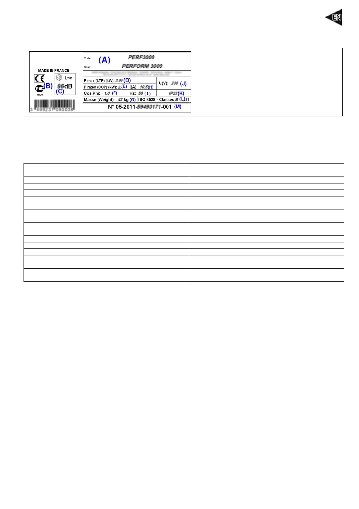 (E): Rated power (L): Reference standard