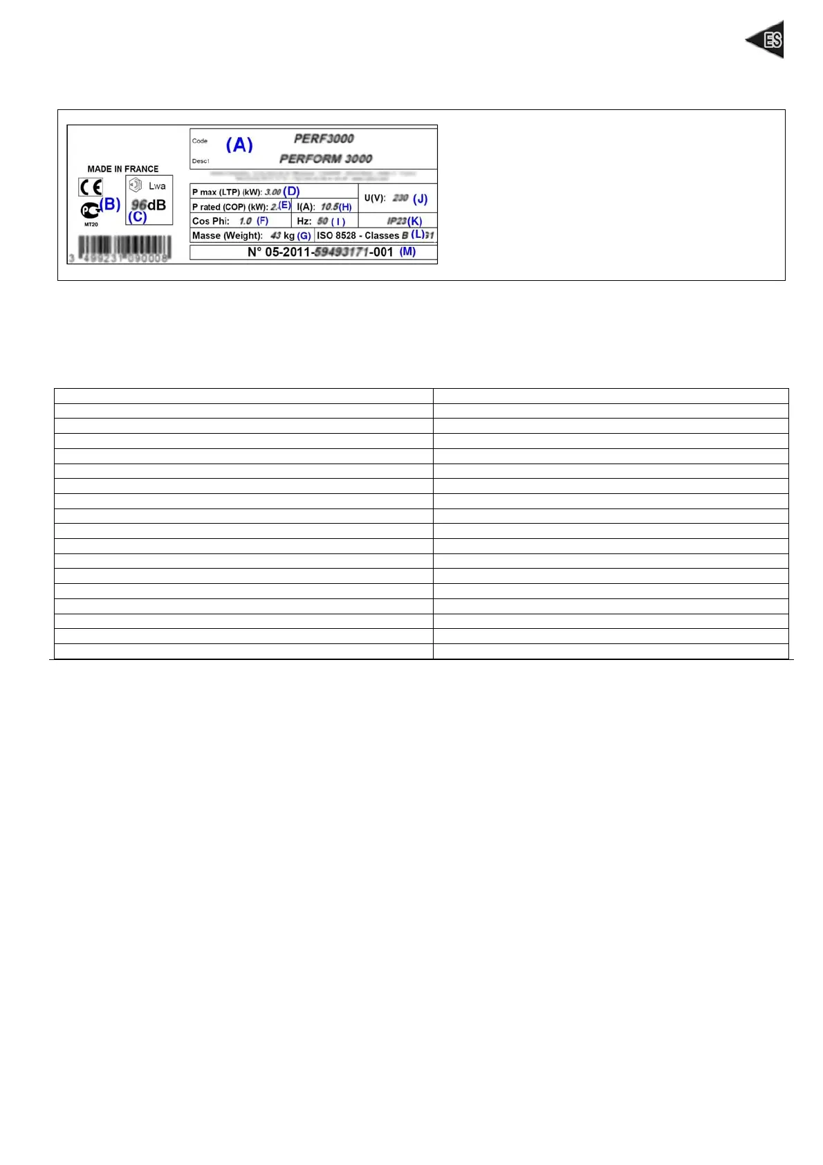(E): Potencia nominal (E): Norma de referencia