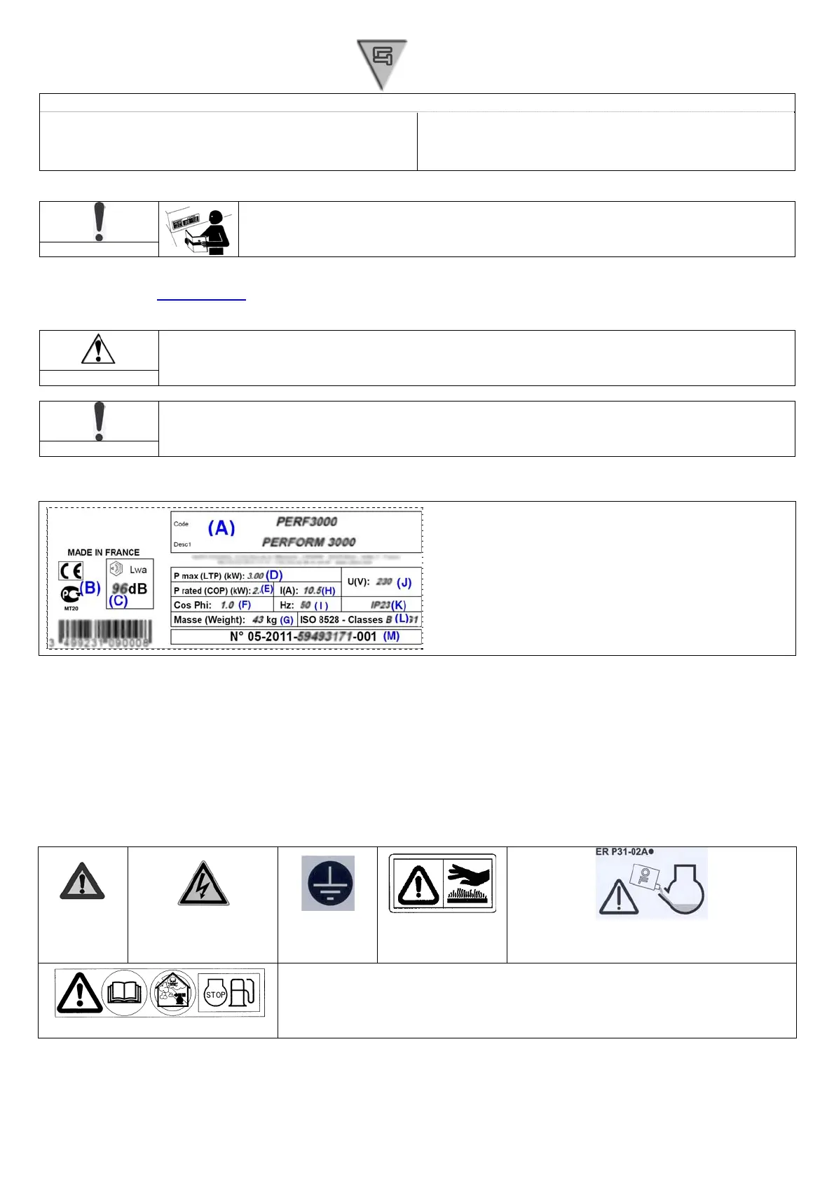 2.1. Simbolių, esančių ant generatoriaus, paaiškinimas