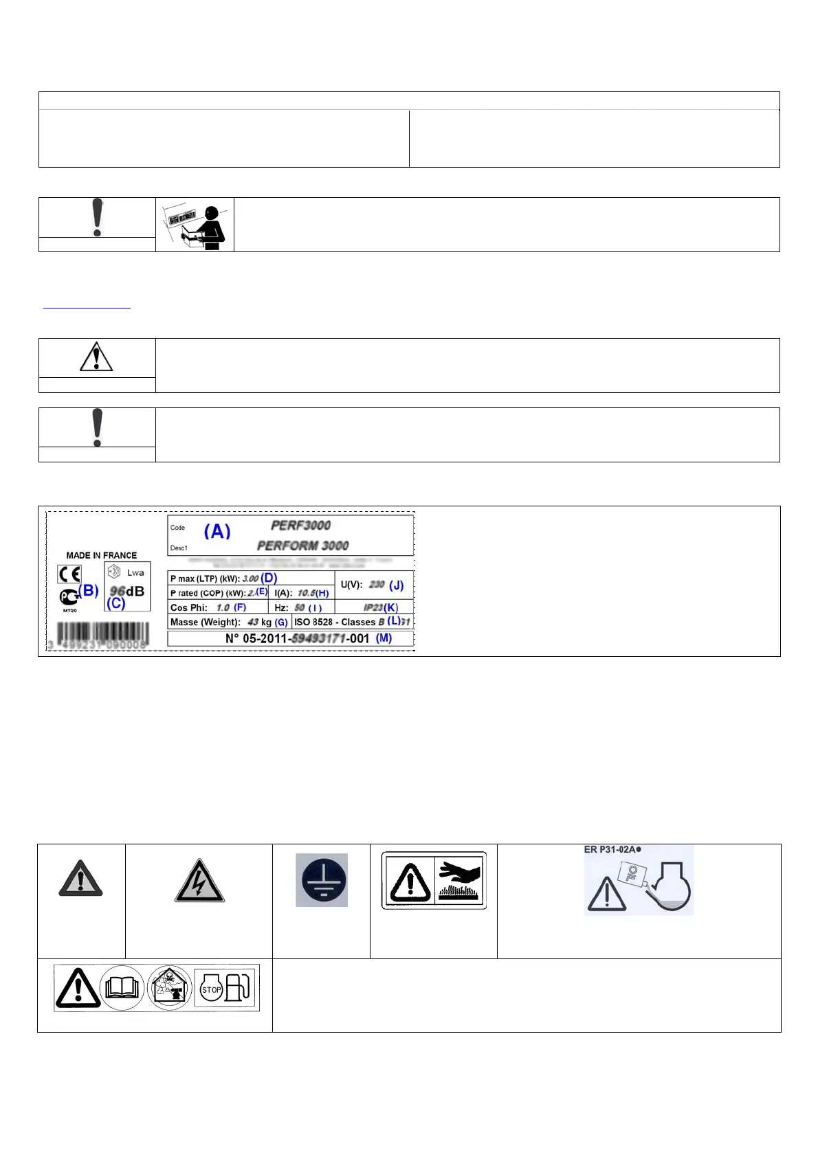 2.1. Signification des pictogrammes présents sur le groupe électrogène