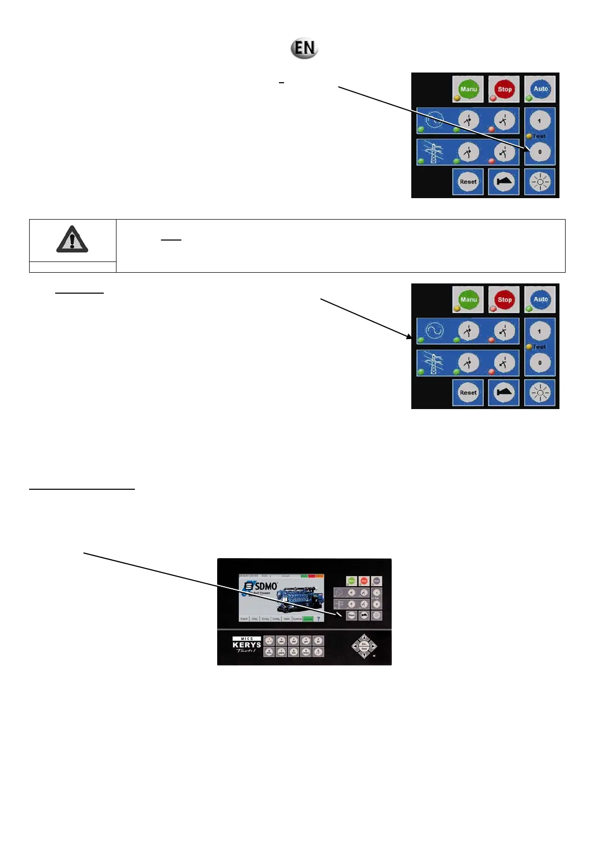The generating set may be stopped at any time by pressing 0 on the test keypad.