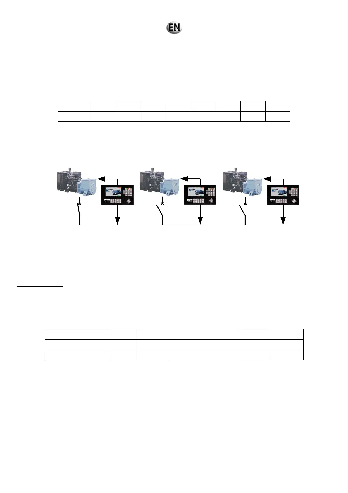takes place. Each generating set will then take 50% of the required power, i.e. 225 kW.
