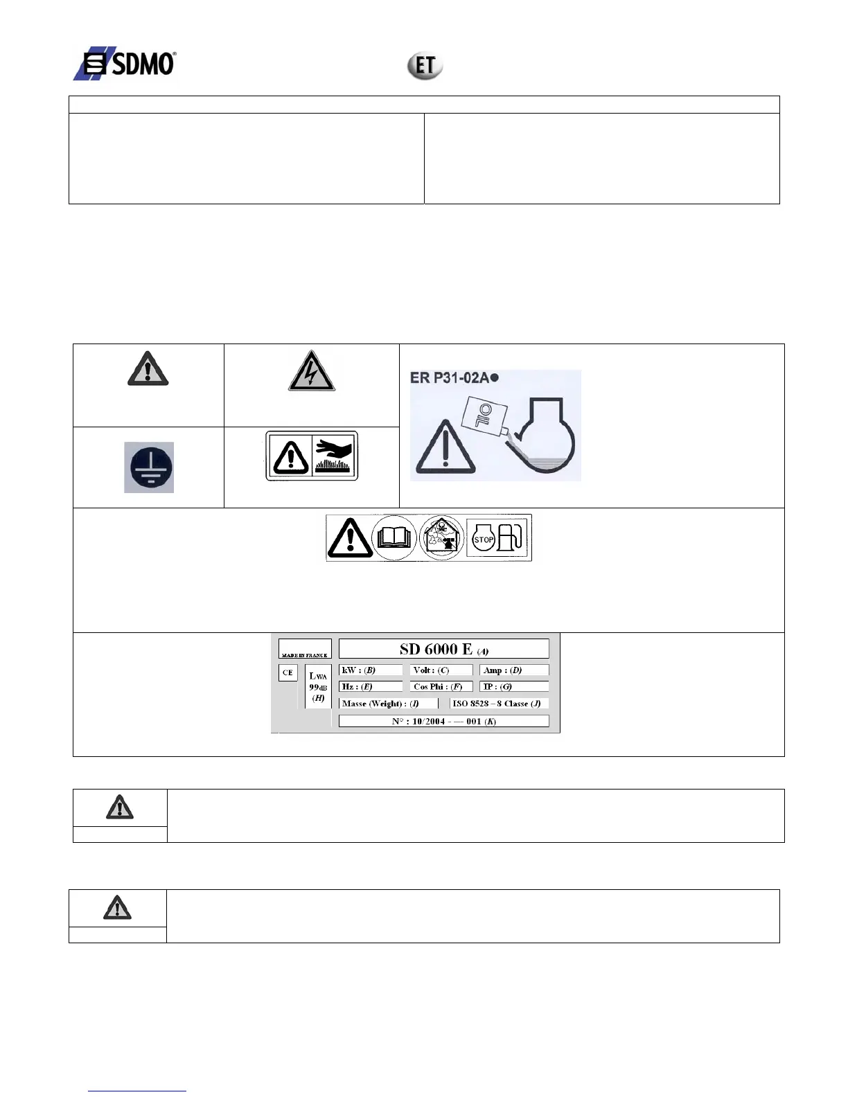 1.2. Piktogrammid ja sildid, mis asuvad generaatori küljes, koos oma tähendustega