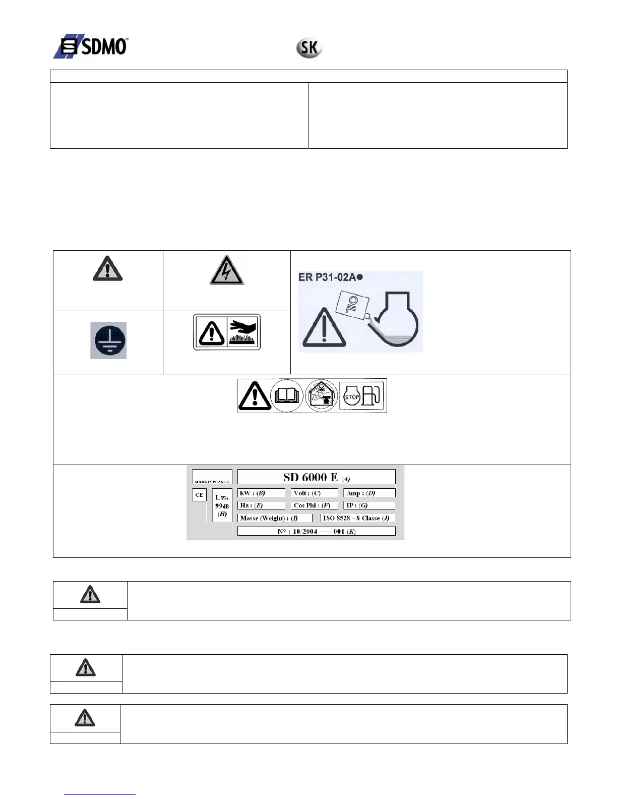 1.2. Piktogramy a štítky vyskytujúce sa na generátoroch a ich význam