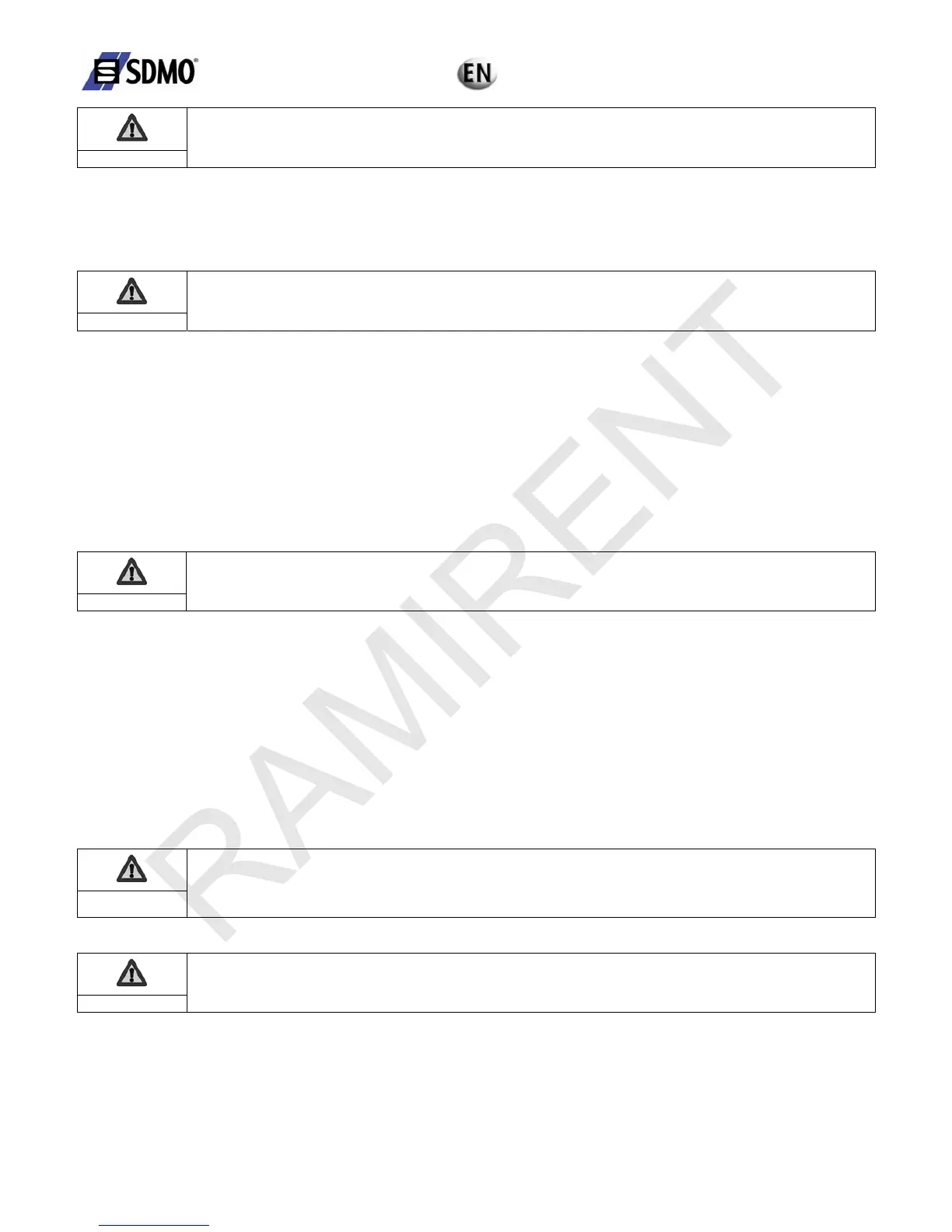 Keep all inflammable materials (e.g.: petrol, oil, fabric etc.) out of the way when the generating set is in operation.