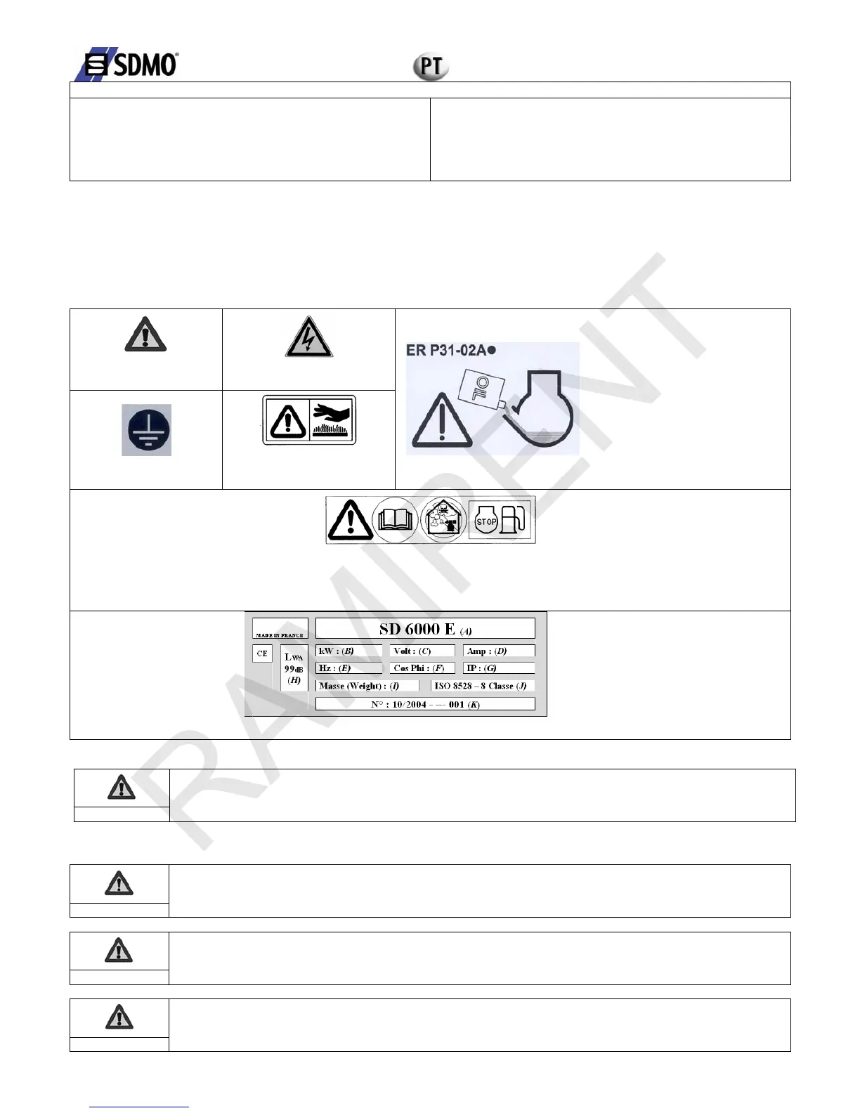 Nunca retirar as tampas de protecção, nem abrir as portas de acesso com o grupo electrogéneo a trabalhar.
