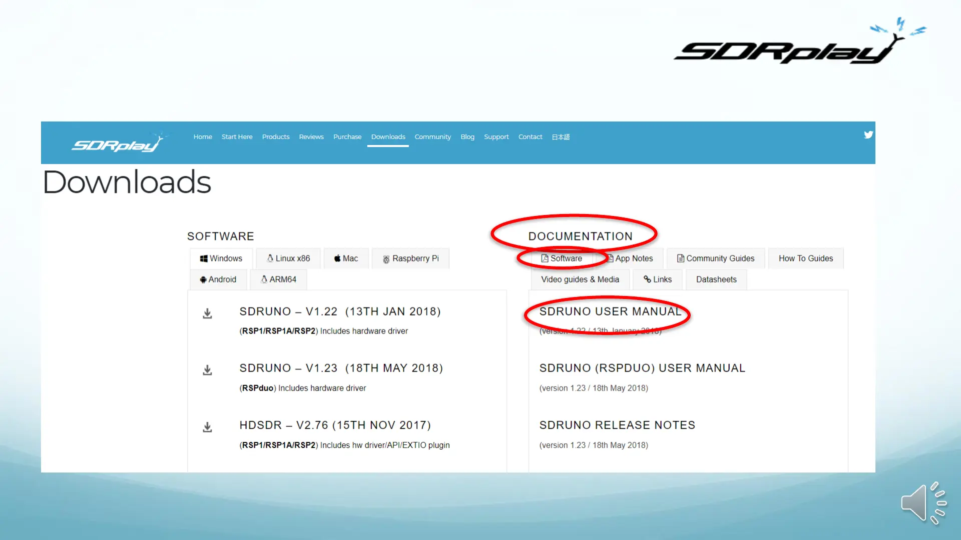 SDRPLAY RSP1A - SDRplay Guides and Documentation; Software Downloads; Documentation Access