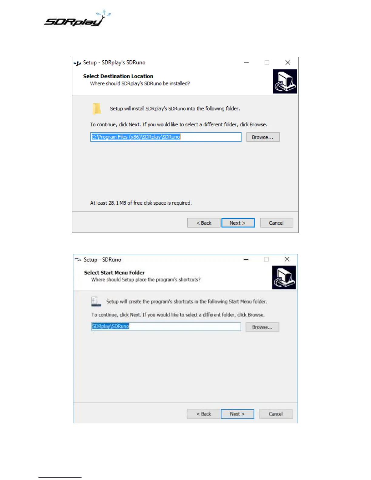 The next screen shows the installation directory. Check you have enough disk space and then click Next