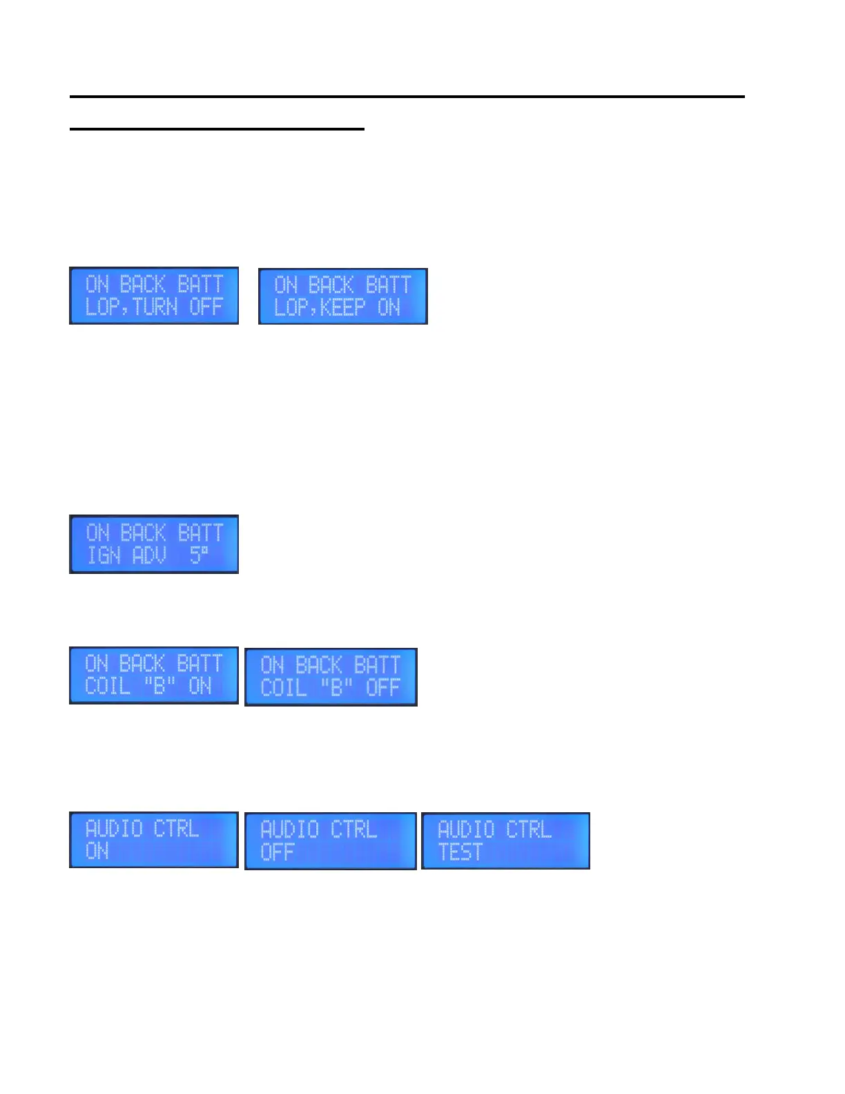 This works in conjunction with another screen, ON BACK BATT COIL “B” OFF(ON).