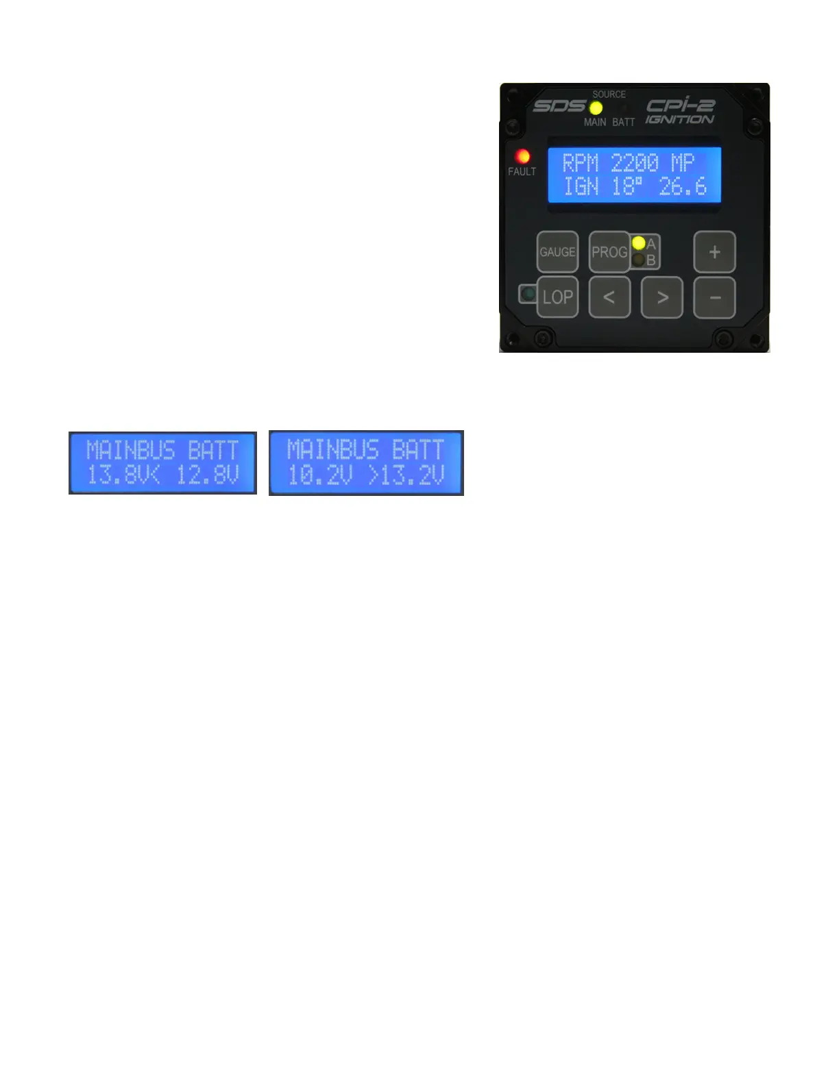 The arrow mirrors the LED’s MAIN and Batt. This is one press of the > key from Gauge1.