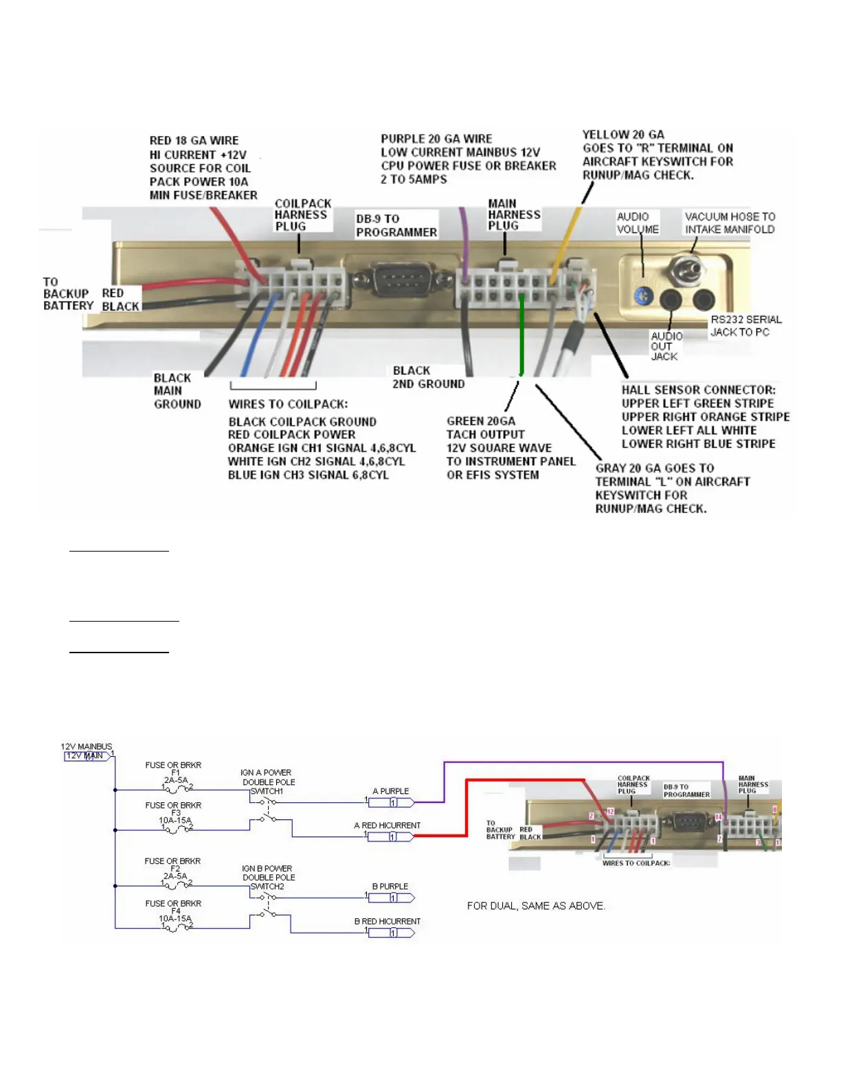 Single board CPi2: One Double pole switch and two breakers are required. 2-5A for the purple wire, 10-15A for the