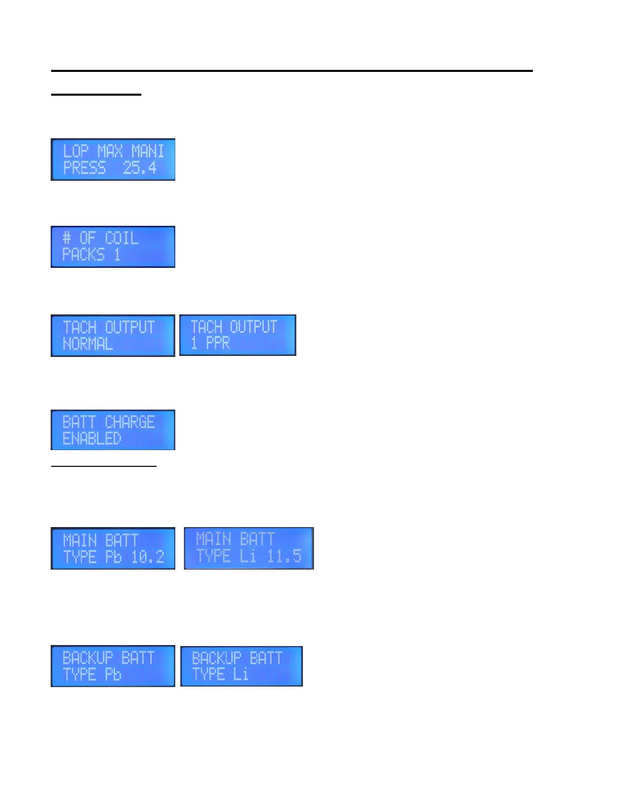 possible before switching over to the backup battery. Important to have this set correctly. Select either Pb for Lead-